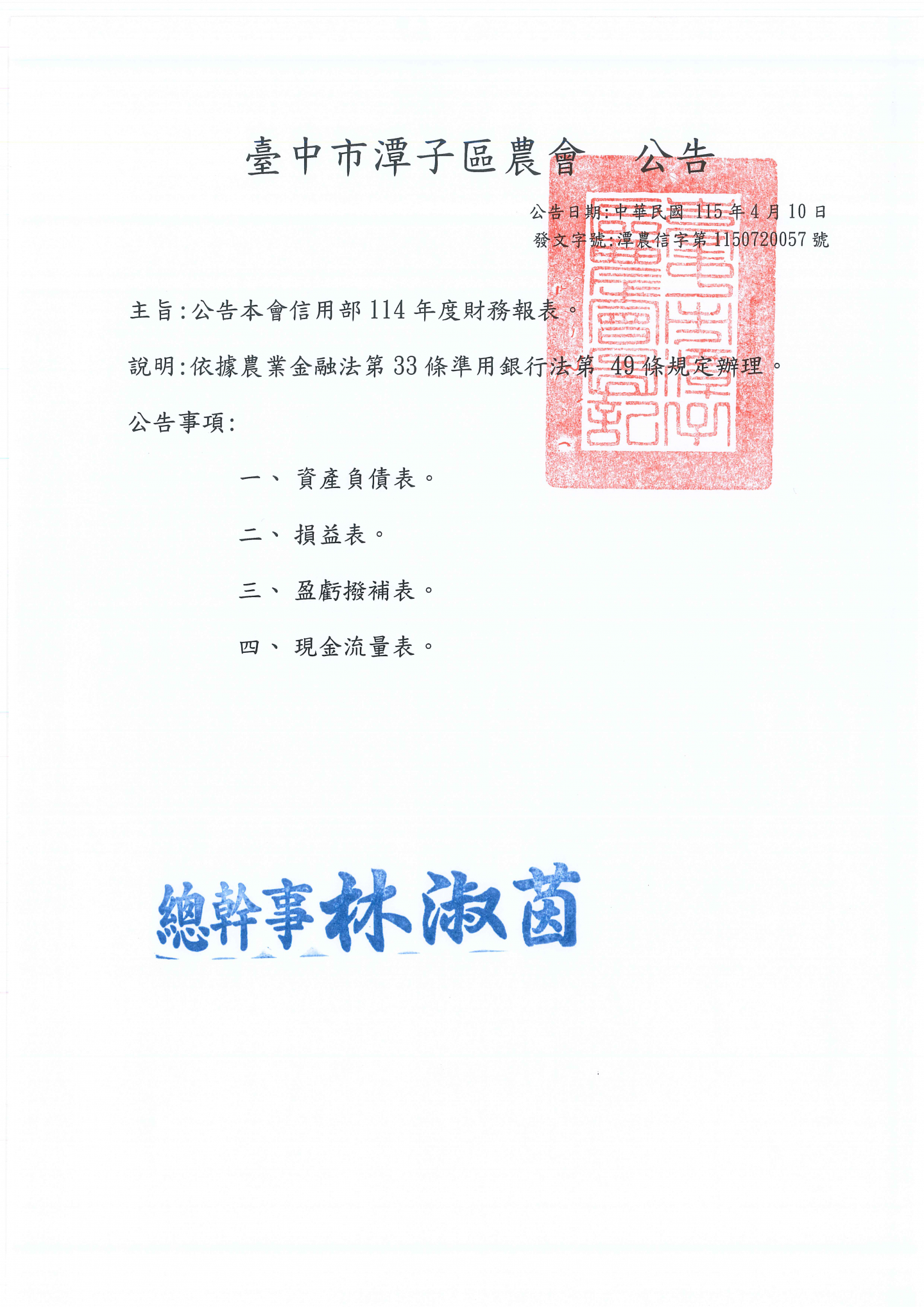 臺中市潭子區農會信用部 - 最新公告
