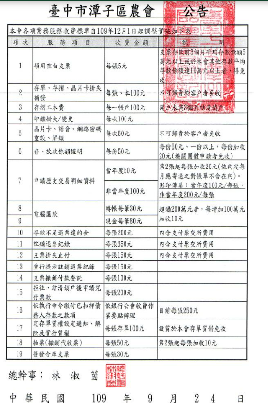 臺中市潭子區農會信用部 - 最新公告